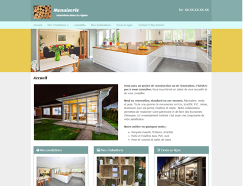 Créer votre site de menuisier (présentation, matériels, références, partenaires, devis, page de contact, etc...)
