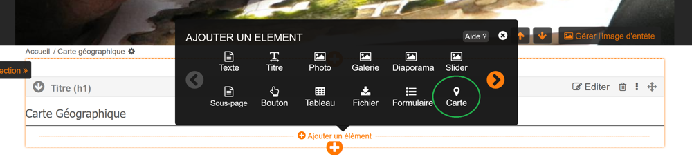1. Cliquez sur Ajouter un élément puis sélectionner parmi le type Carte.