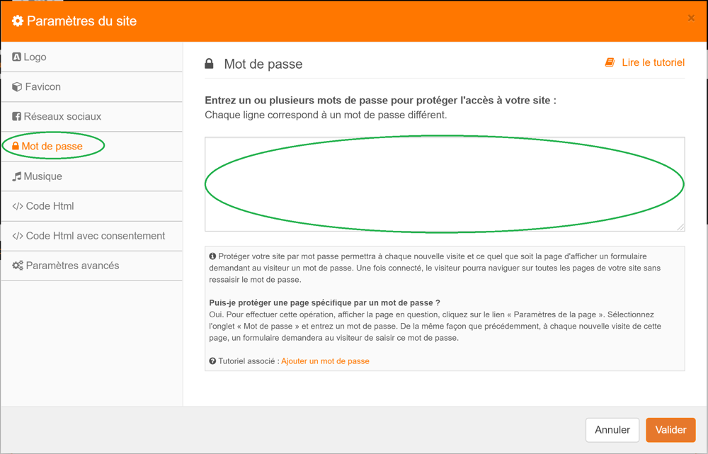 - Question 2 : Comment installer un mot de passe sur une page spécifique de mon site ?