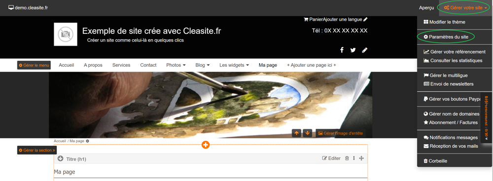 1. Cliquez dans le menu sur Gérer votre site > Paramètres de votre site