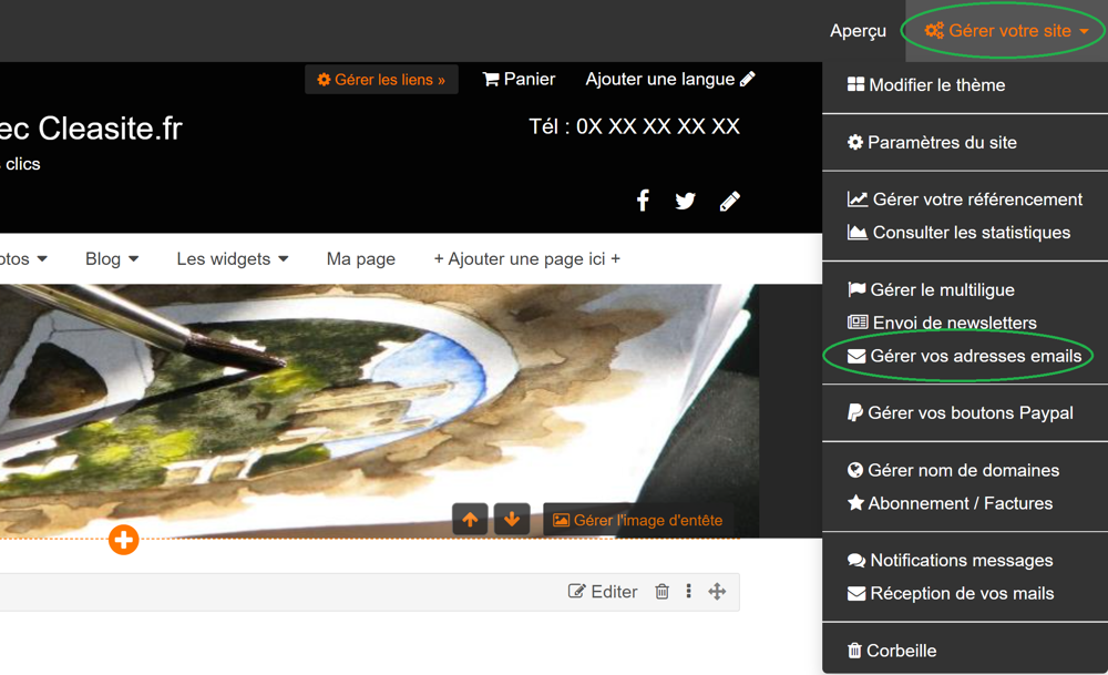 Cliquez sur « Gérer vos emails » pour le site Internet sur lequel vous avez enregistré votre nom de domaine.