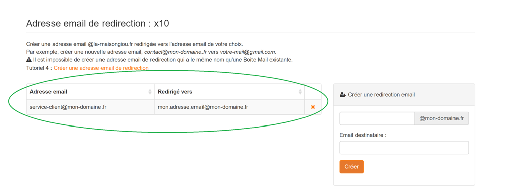 Tous les expéditeurs qui enverront un email à l'adresse service-client@mon-domaine.fr seront reçu sur votre boite mail mon.adresse.email@mon-domaine.fr