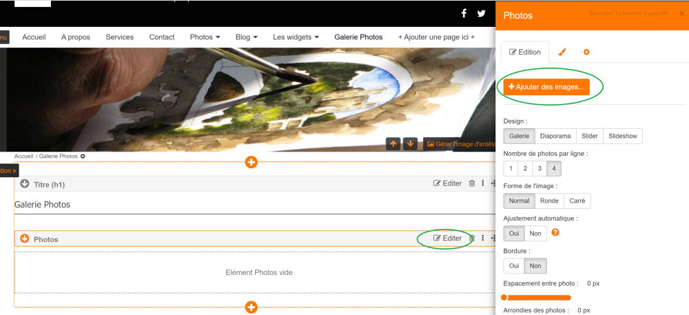 Cliquer sur Editer, une fenêtre latérale apparait. Cliquer sur Ajouter des images. L'explorateur de fichiers s'ouvre puis sélectionner une ou plusieurs images sur votre poste de travail.