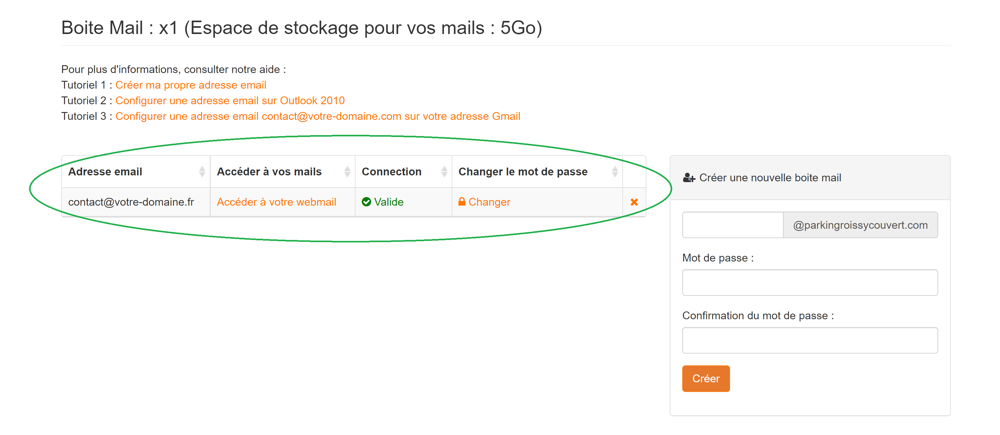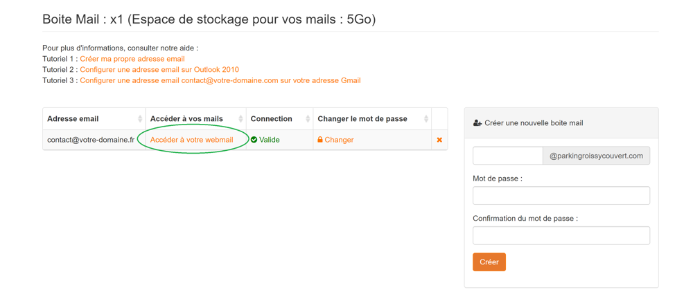 Votre boite mail est opérationnelle, vous pouvez la voir s'afficher sur votre page d'accueil de gestion de vos adresses emails.