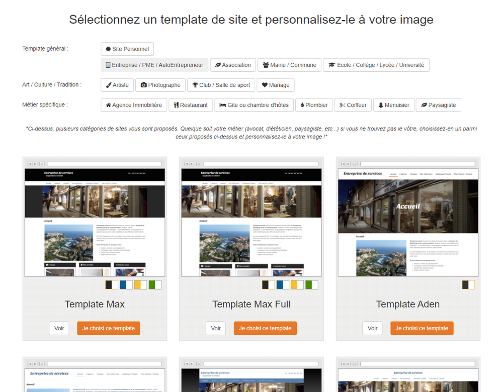 Cliquez sur un des thèmes proposées et un coloris associée à ce thème. Pour information, vous pourrez changer de thème et de couleurs à partir de votre compte.