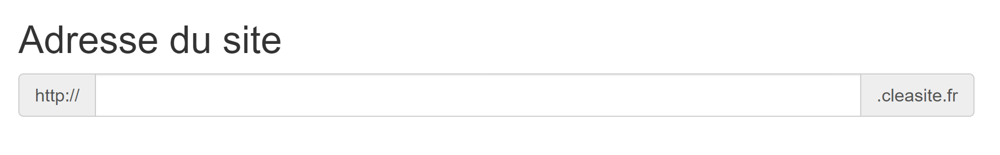 Le premier champ du formulaire est surement le plus important que vous aurez à saisir dans ce formulaire. L'adresse de votre site sera un sous-domaine de cleasite.fr, par la suite vous pourrez acheter ou rediriger un nom domaine que vous possédez vers votre site Cleasite.