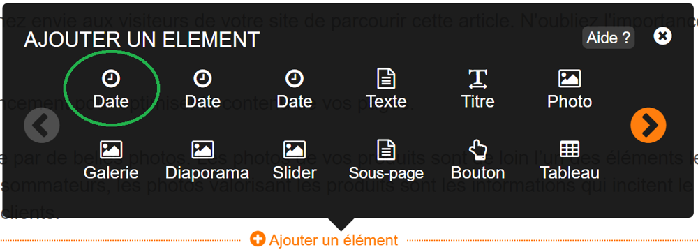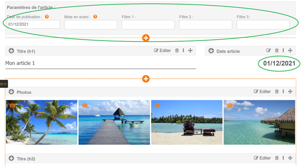 Information : Ajouter un ou plusieurs éléments de type date de l'article pour afficher la date où vous le souhaitez au sein de votre page.