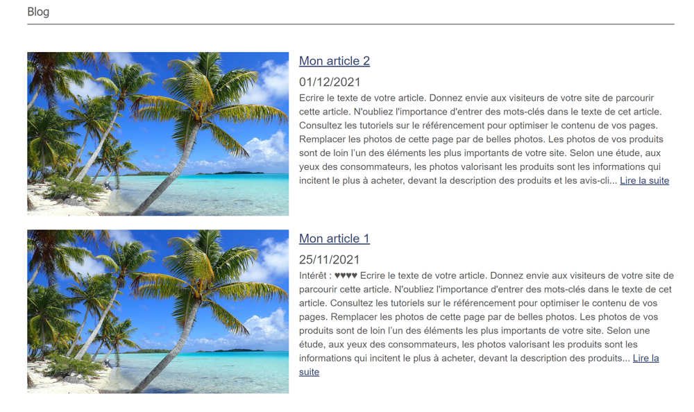 5. Retourner sur votre page Blog pour voir l'ensemble de vos articles.