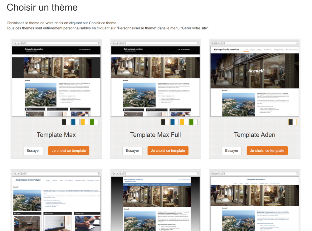 Il vous suffit de cliquer sur le bouton "Je choisi ce template" correspondant au thème que vous souhaitez appliquer.