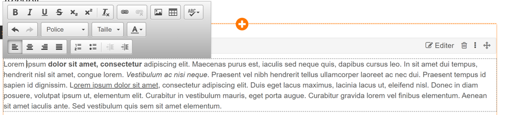 L'élément Texte est le principal, il permet d’écrire les textes sur les pages de votre site. Une option de l'élément permet d’ajouter une image à droite ou à gauche du texte.